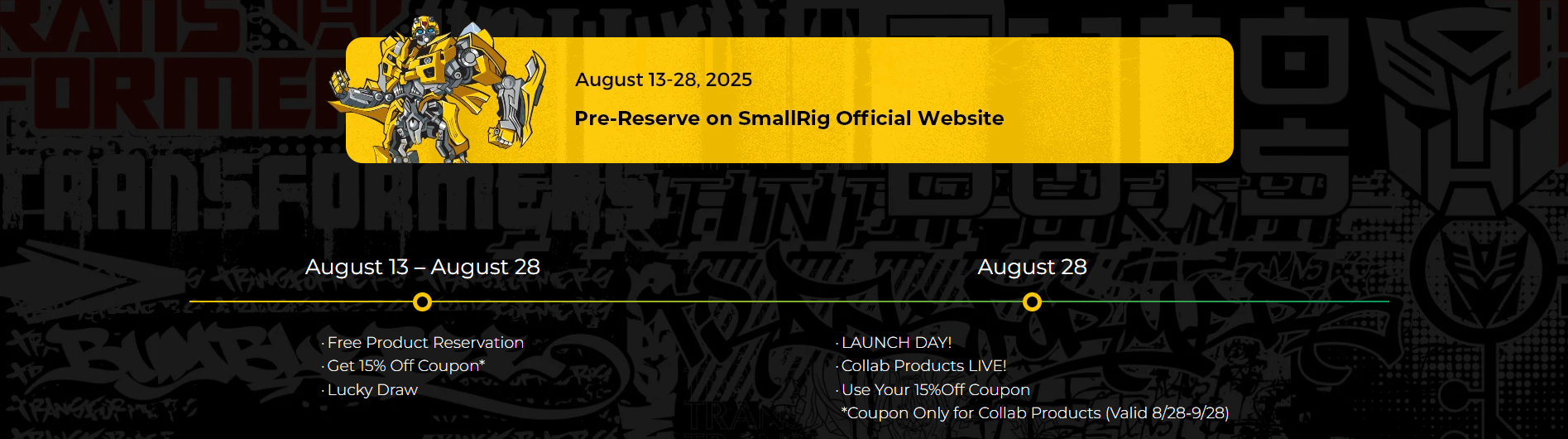 - Exclusive to Reservers: Only users who successfully reserve any Transformers × SmallRig product during August 13-28 will receive lucky draw entries.