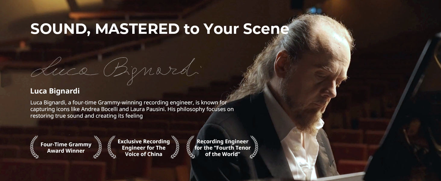 The S70 features an omnidirectional condenser capsule with a 70dB signal-to-noise ratio and 120dB max SPL. Its three-level noise reduction and five-level gain control let you cut through background clutter and highlight vocal clarity. Even better — the sound profile was fine-tuned in collaboration with Grammy-winning sound engineer Luca, and includes 9 professional EQ presets (like “Full” “Bright” “Male Voice” “Female Voice” and “Ambient”) tailored for speech, music, interviews, and more.