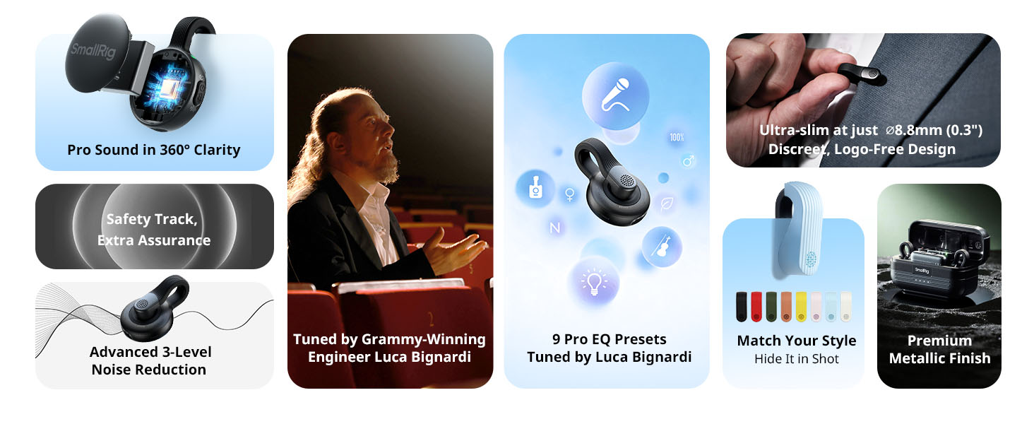 - Interviews & Streaming: The transmitter is just 8.8mm thick with a logo-free design for discreet wear. Also available in a clean white finish for on-camera style.